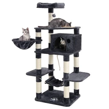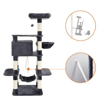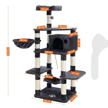Dieser Kratzbaum bietet so viel Platz! Zwischen Liegemulde, Hängematte, Kuschelhöhle und zahlreichen Plattformen findet sicherlich jede Ihrer Samtpfoten ihren Lieblingsort
