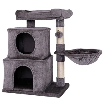 - IDEALES SPIEL- UND RUHEPARADIES. Die vortreffliche Ausstattung dieses Katzenbaumes mit 2 Höhlen und einem Plüschball mit Glöckchen befriedigt den Spieltrieb Ihrer Katze. Das gemütliche Liegebett und die Liegemulde unterstützen zusätzlich die benötigten Ruhephasen und auch das beliebte Beobachten kommt nicht zu kurz. Die perfekte Balance zwischen Spielspaß und Rückzugsmöglichkeiten.