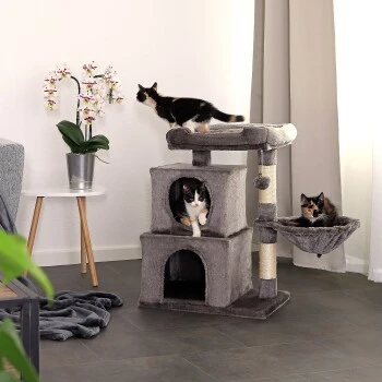 - KOMFORTZONE FÜR IHRE KATZE. Dieser Katzenkratzbaum aus weichem Plüsch und idealen Beschäftigungsmöglichkeiten schafft die ideale Umgebung für jede Samtpfote. Der Kratzturm garantiert artgerechtes Spielen, Ausruhen und Verstecken. Die Abwechslung zählt!