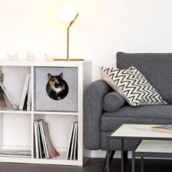 Diese Katzenhöhle aus wärmeregulierendem Filz ist eine gelungene Kombination von Körbchen und Höhle. Ober- und Unterteil sind durch einen Reißverschluss zu einer Kuschelhöhle vereint und können so aber auch einfach voneinander getrennt werden. Die Unterschale kann solo als Ruhekorb genutzt werden. Um das Liegen noch bequemer zu gestalten, liegt dem Lieferumfang ein weiches Kissen (Ø ca. 37 cm) bei. Es enthält eine Vliesfüllung. Der Bezug ist nicht abnehmbar und durch Handwäsche zu reinigen. Drei schöne Ziernähte auf der Oberseite, durchbrechen die schlichte Form.
