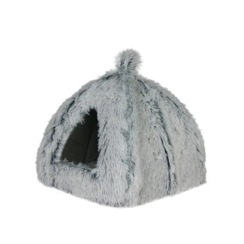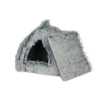 Der weiche Langflorplüsch dieser Höhle ist nicht nur ein optisches Highlight sondern lädt regelrecht zum Kuscheln ein. Im Inneren befindet sich ein weiches Kissen (ca. 32×32 cm), das auf einer Seite ebenfalls mit Plüsch und auf einer Seite mit Stoff bezogen ist. Das Kissen kann entnommen werden und so lässt sich die Höhle einfach zusammen klappen und kann platzsparend auch mal mit auf die Reise gehen. Die Unterseite der Höhle ist mit Antirutschstoff versehen. Kissen sowie Höhle lassen sich einfach per Handwäsche reinigen.
