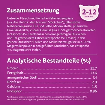 Alleinfuttermittel für heranwachsende Katzen, weitere Informationen erhalten Sie hier: Tel: +49 (0)4231 94 0 oder E-Mail: [email protected]